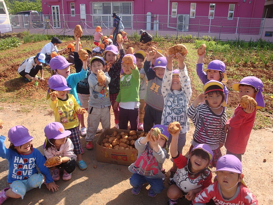 「先生見て~」「大きいでしょ~」自分でジャガイモを掘りあげた子ども達は大興奮!!「いっぱい採れすぎてどうしよう…」とうれしい悩み(?)聞こえるほど、大豊作でした。