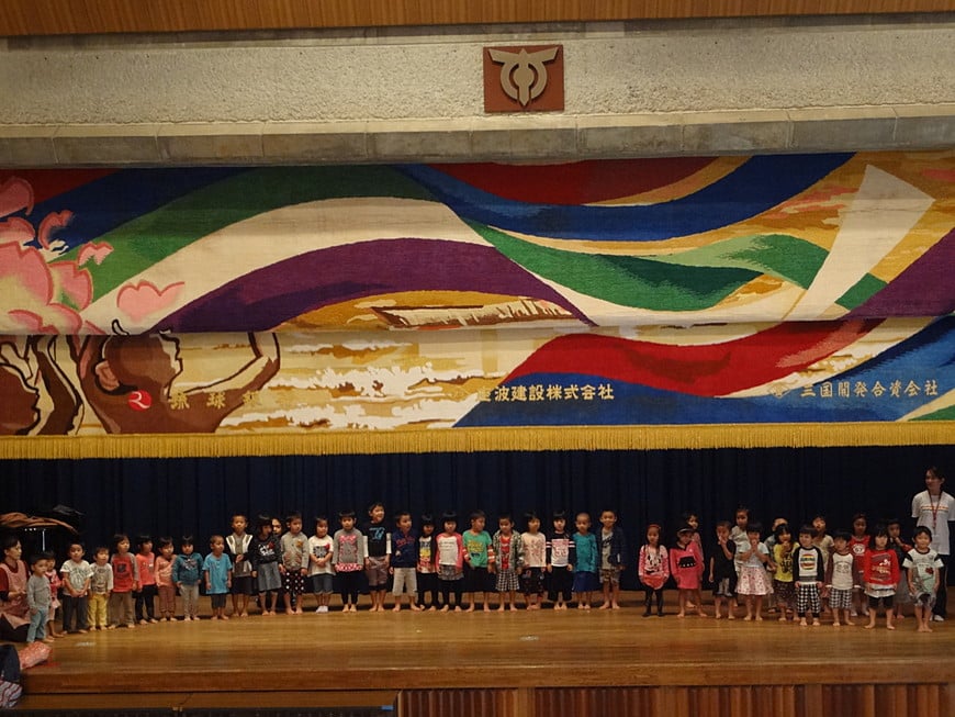 来る12月21日(土)に行われる第10回美ら咲保育園保育発表会。その練習風景の1コマです。