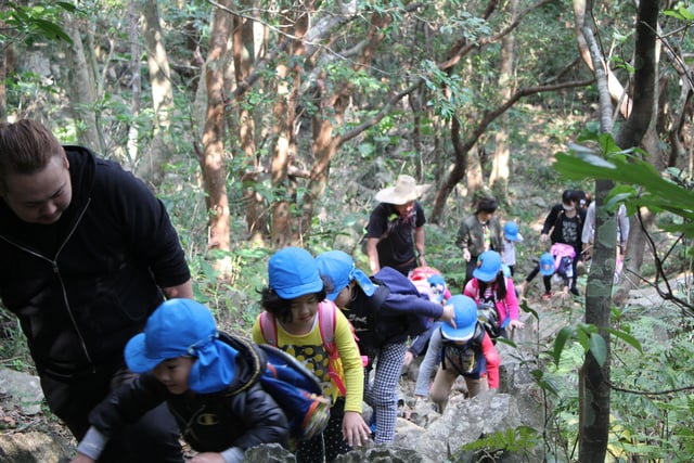 さて、お弁当会の昨日、卒園を目前に控えたきりん組のみんなは、なんと登山に挑戦‼八重岳の向こう側にそびえ立つ嘉津宇岳へのアタックです‼標高452mある嘉津宇岳は、沖縄本島内では3番目に高い山ですが、山頂までの道のりは、険しい獣道‼しかし、子ども達は互いに励まし合い、そして助け合いながら山頂にたどり着く事が出来ました。せっかく天気が良いので、山頂にてランチタイム♪愛情おにぎりを頬張る子ども達の姿は、どの子も達成感に満ち溢れていました。帰りも、安全に気をつけながら、ゆっくりゆっくり時間をかけて下山する事が出来ました。参加して頂きました保護者の皆様、誠に有難うございました。
