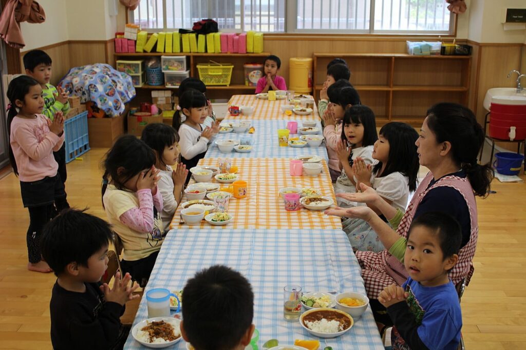 さて、明日の卒園式を前にきりん組最後のお食事におじゃま♪