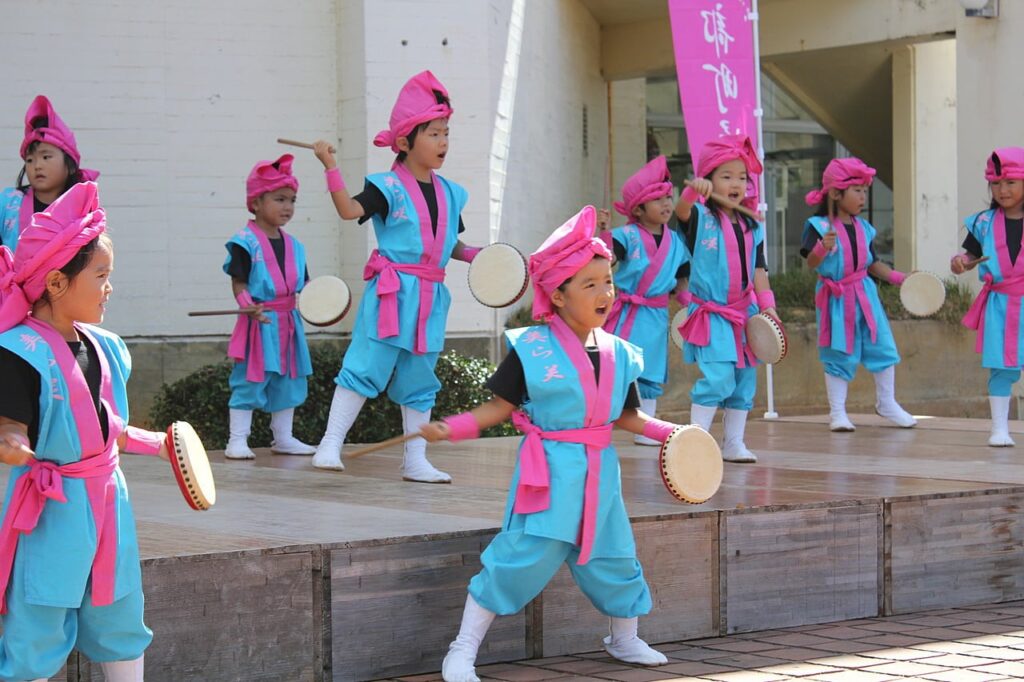 なんと、まつりのトップバッターとしての出演とあって、子ども達は気合入りまくりです!!福祉まつりでも披露した「ミルクムナリ」を力いっぱい演舞し、まつりに華を添えました。