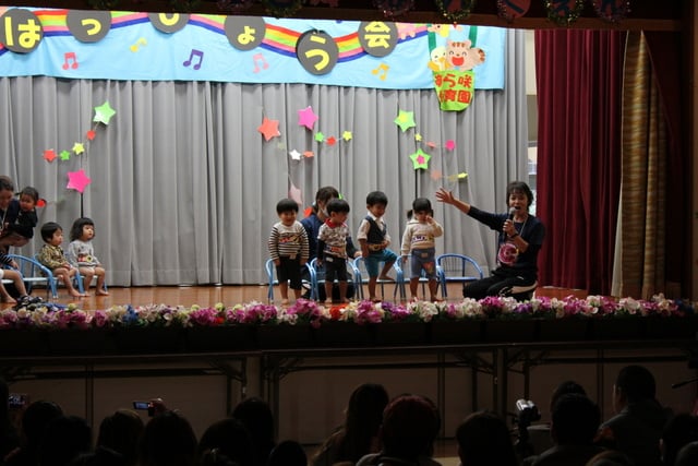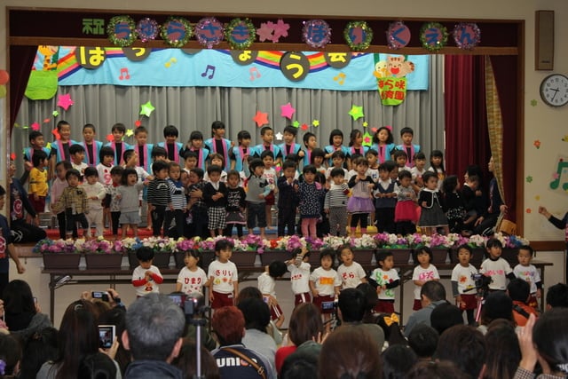 さて、今週のインフルエンザ騒動で遅れてしまいましたが、去った2月4日に行われた「第13回 保育発表会」の様子をUPします。今回は場所を変え、地元の東公民館にて行われました。舞台と観客が近くなったせいか、全体の熱気がすごかった‼子ども達も、その熱気に臆することなく、みんな元気に表現できました♪
