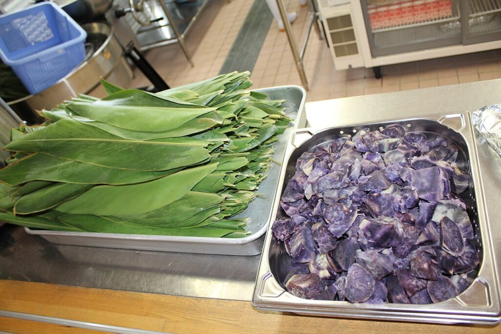 さて、明日の鬼ムーチー作りを前に、きりん組のみんなで月桃の葉っぱ洗いを行いました。ゴシゴシ洗うと破れるのでやさしく、やさしく丁寧に…さてさて、美味しく出来るかな?葉っぱを蒸して、紅イモも準備完了!!明日は、大好きなおばあちゃんと一緒に鬼ムーチーを作ります!!みんな、明日が楽しみだね~♪