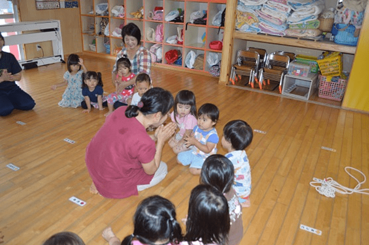 わらべうたあそび(2,3歳児) 2016 5/24 ドリーム保育園からのお知らせ 2016年5月24日2025年6月4日 今日は5月の2,3歳児のわらべうたです。 2歳児22名、3歳児20名、合計42名が2階ホールに集まり、大城八重子先生から、指導を受けました。 ドリーム保育園からのお知らせ