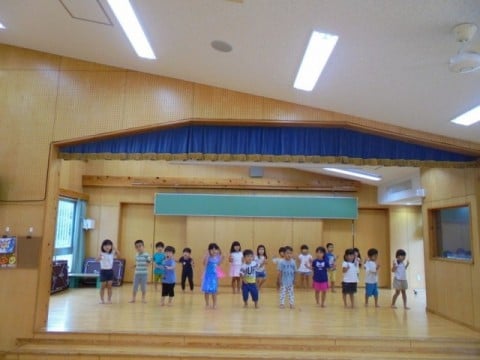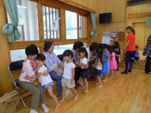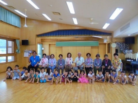 町内のお年寄りを招いての世代間交流(ミニデイサロン)が今回も楽しく行われました。今月は崎本部区のおじいちゃん、おばあちゃん9名がドリーム保育園へ遊びに来てくれました。そら組が元気に遊戯を披露してくれました。お返しにおばあちゃんたちも民舞を踊ってくれました。楽しいひと時でした。崎本部のおじいちゃん、おばあちゃん、またきてね !(^^)!