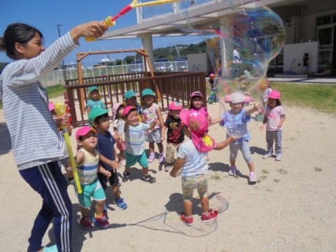 楽しい園庭 2019 5/24 ドリーム保育園からのお知らせ 2019年5月24日2025年6月8日 咲先生、もっと作って~ しゃぼん玉大好きお友だち大好き… ダンゴムシ捕まえたよ !(^^)! 梅雨入りとは思えないほどカラット晴れたお天気に園庭では子どもたちの笑い声が響きます。大好きな咲先生が特大しゃぼん玉を作ってくれました。ドリーム自慢の広~い園庭を惜しみなく駆け回り…疲れたら木陰で一休み !(^^)! 楽しいなぁ ♫ ドリーム保育園からのお知らせ
