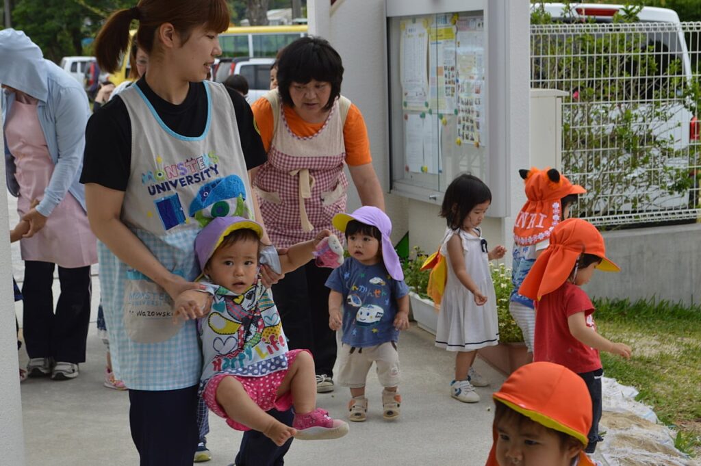 今年度初めての避難訓練でしたが、4歳児のそら組さんは避難訓練の「おかしもち」をほとんどの子が覚えていました。2歳児、3歳児の頃から毎月実施してきましたから自然と憶えたのでしょうね。