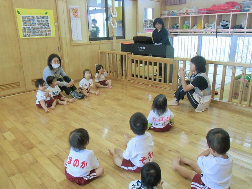 リトミック体験 2014 11/21 風のわ保育園からのお知らせ 今日は、1歳児きらきら組と2歳児のびのび組のリトミック体験でした。 先生のピアノの音に合わせ、色々な道具を使いながら身体を動かしました 聞きなれた音楽が流れると口ずさみリズムをとり、楽しんでました。 風のわ保育園からのお知らせ
