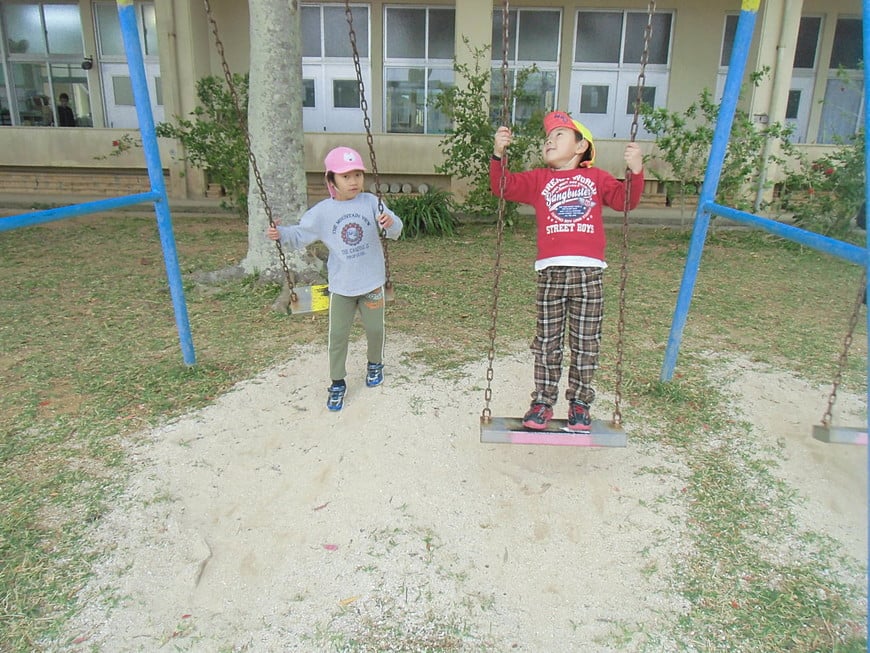 さて、今日は4,5歳児クラスが上本部幼稚園へ交流に行ってきました。幼稚園の園庭や室内で、固定遊具やおもちゃ、昔遊びの道具など色々なものがあり、とても興味深々好きなものにチャレンジし遊びました。初めての体験もあり遊びながらコツや感覚を覚え遊びの楽しさを知り、幼稚園生小学生になる期待が膨らんでいるようでした。