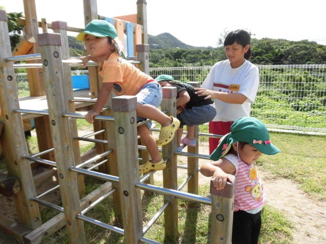 沖縄本島の南部と北部に分かれ行われ、はるばる本部町へ来てくれたことに喜びと感謝を伝えたいと思います。ありがとうございます。生徒さんも初めての場所でとても緊張して眠れなかったらしく、2日目からは、笑顔もみられ、子ども達と楽しく遊んでいる様子をみて安心しました。将来は子どもと携わる仕事がしたいと言っていたので、ぜひ保育士の道に進めるよう頑張ってほしいものです。