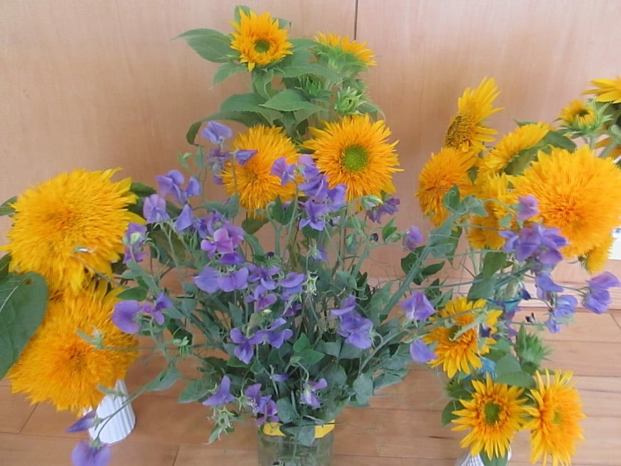 せっかく植えたひまわりや、スイトピーも台風被害にあう前に切り取り、お部屋で花を咲かせて、子ども達も大きなひまわりに喜んでいます。