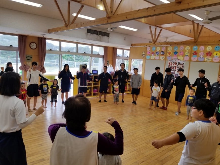 13日(木)、本部高校2年生のスポーツ福祉課の生徒20名が、風のわ保育園4歳児もりもり組との交流会を行いました。