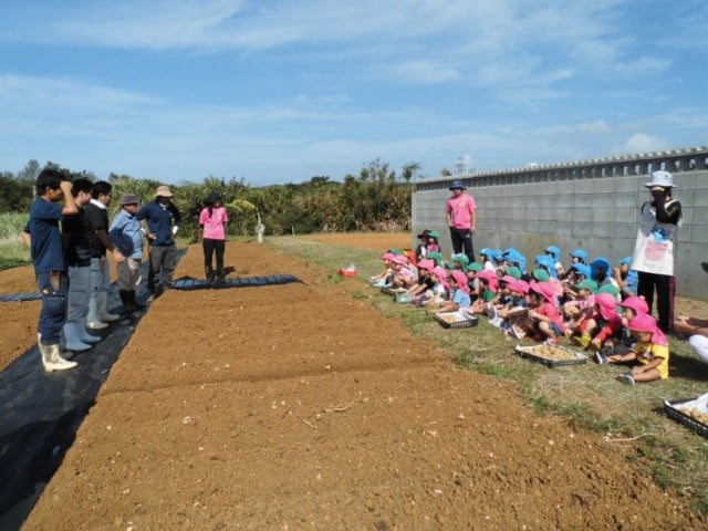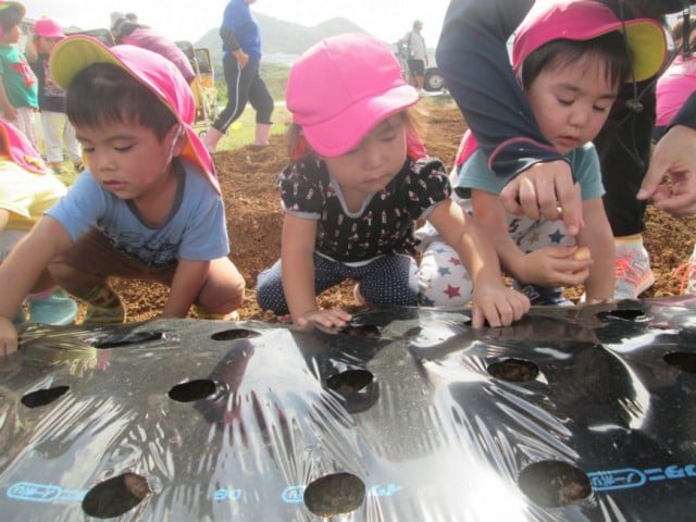今年も役場産業振興課の方達や、青年農業者の方達の協力を頂き、野菜の植え付けを行いました。